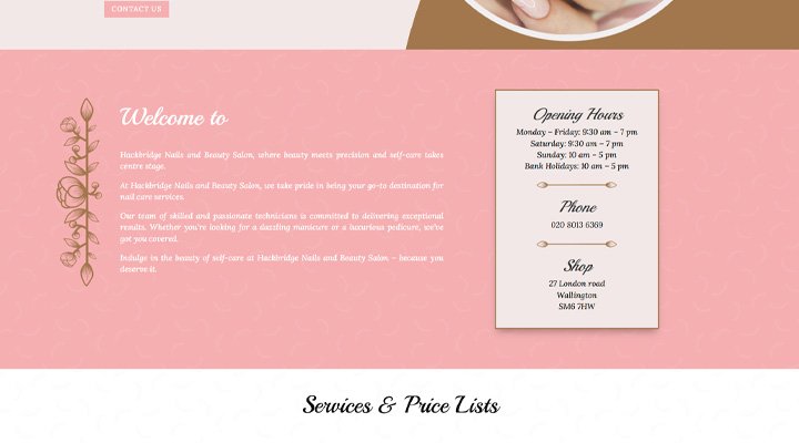 Hackbridge Nails and Beauty is a welcoming salon where beauty meets precision and self-care takes centre stage. The website highlights a range of professional nail care services, from dazzling manicures to luxurious pedicures, delivered by a team of skilled and passionate technicians.