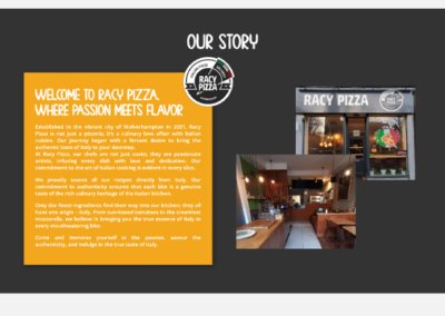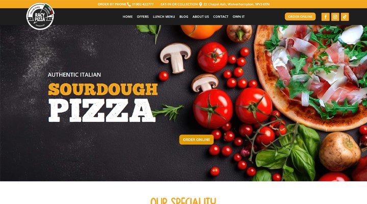 The Racy Pizza website presents Wolverhampton’s only authentic sourdough pizzeria, showcasing its handcrafted pizzas made with ingredients sourced directly from Italy.