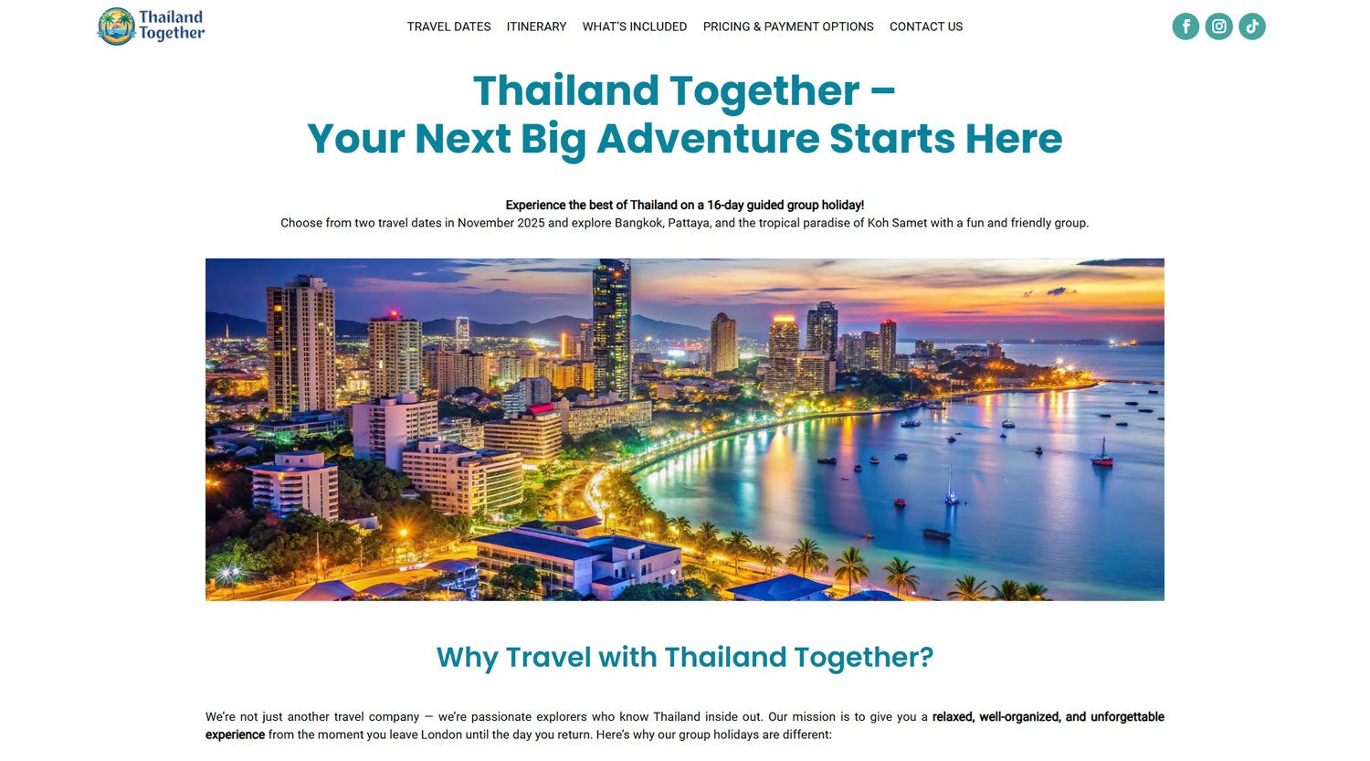 With a focus on unique experiences, smooth organisation, and a welcoming community spirit, the site captures what makes Thailand Together holidays truly different.