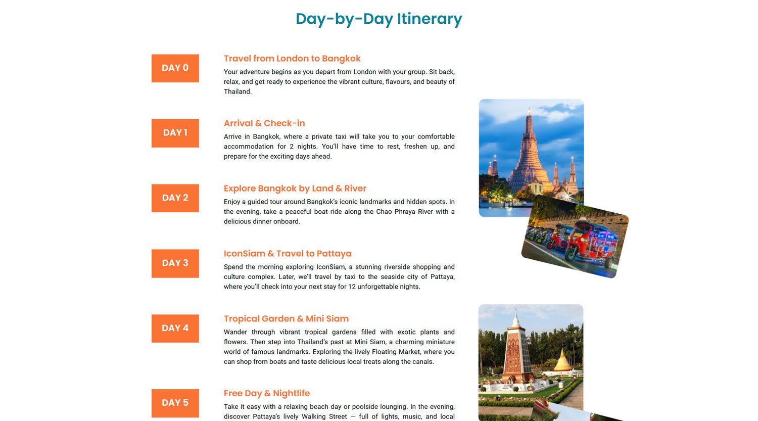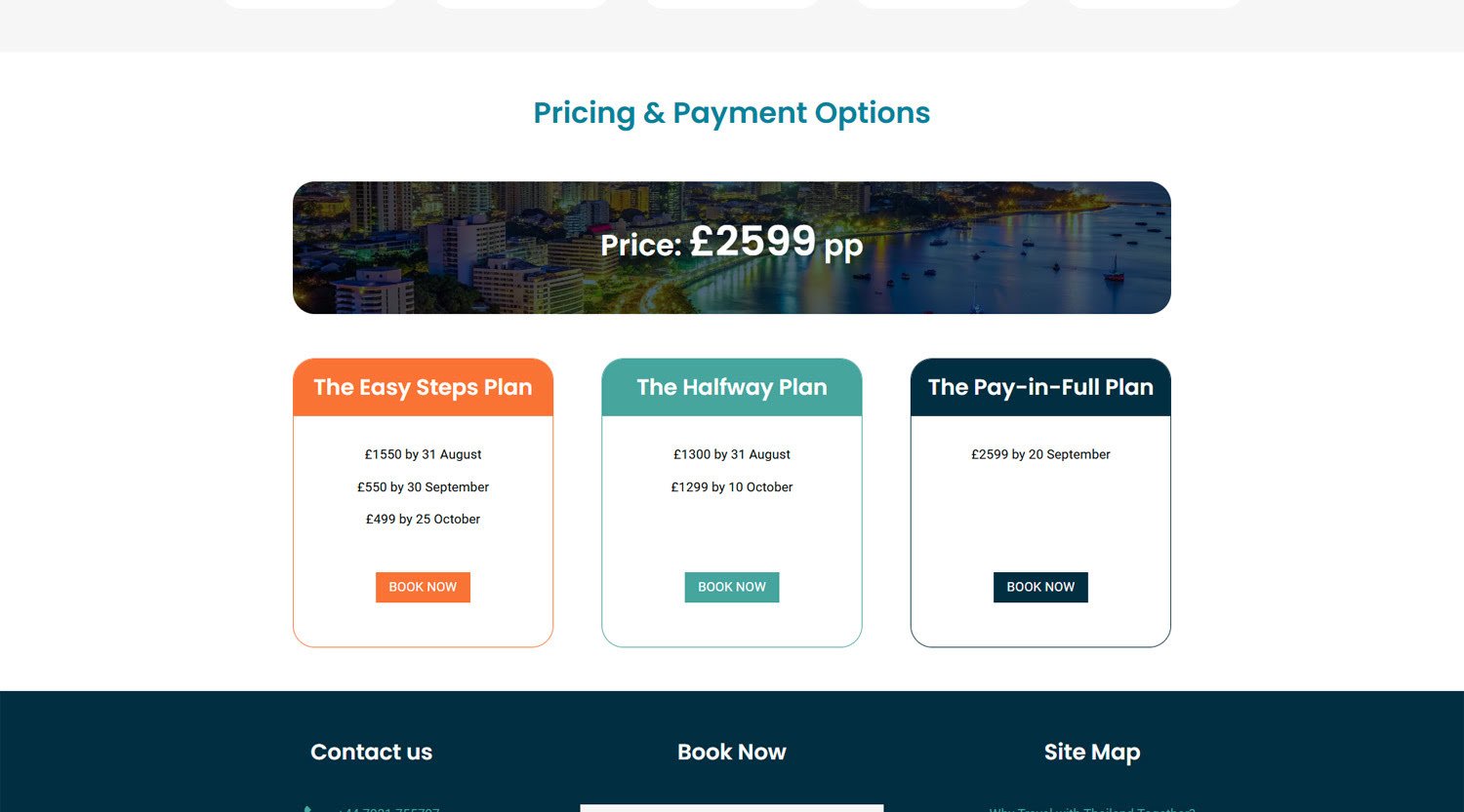 Thailand Together is more than just a travel company — it’s a team of passionate explorers who know Thailand inside out. The website showcases their mission to provide relaxed, well-organised, and unforgettable group holidays, guiding travellers seamlessly from London to Thailand and back.